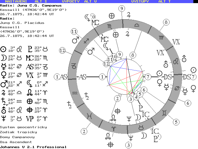 Otřel jsem se tu před časem o C.G.Junga. Lépe řečeno dal jsem průchod svému anbivalentnímu vztahu k tomuto jednomu z nejvýznamějších klidí 20. století. Aby bylo možné uchopit věc astrologicky, lepím sem jeho nativitu zajímavou stacionárním Marsem v 11. domě. Turnovský