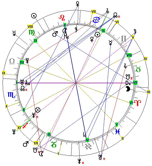 V devítce je také Saturn vládce komunikace a v desítce čestný Mars.Mars je vládcem 6.domu,tedy jakési služebnosti-nepřípísknul to ten manžel s tou služebností?