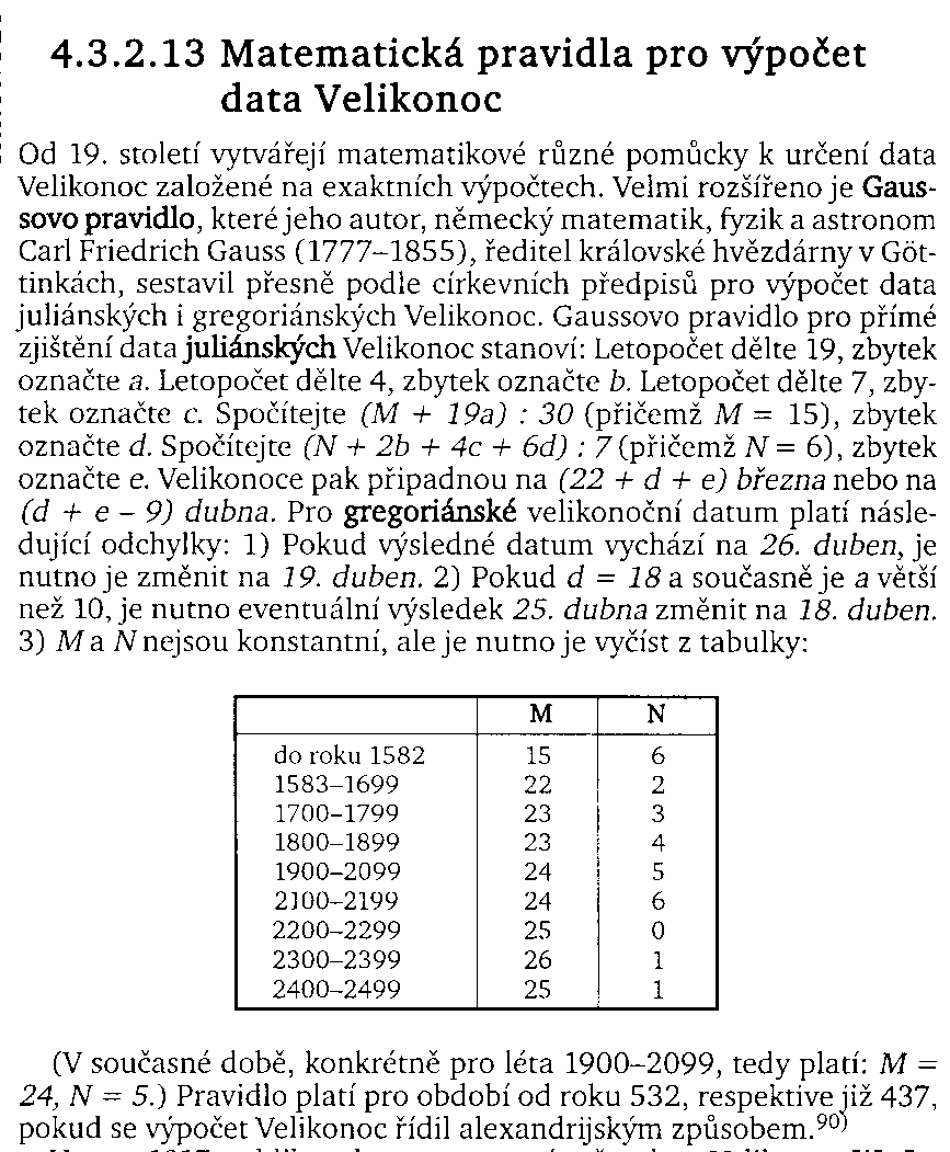 Uvedený výpočet pana Gausse je převzat z velmi pěkné knihy Marie Bláhové - Historická chronologie, kde je stanovení správného data Velikonoc věnováno 43 stan.