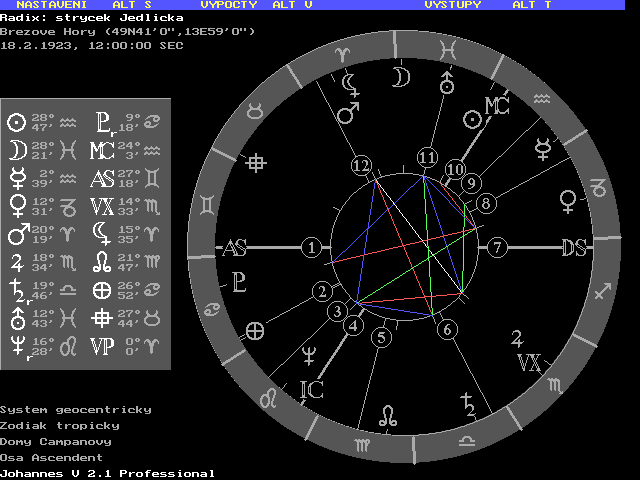 Dobrý den, včera dávali v televizi pořad o "Strýčku Jedličkovi". Zajímalo by mě jak vypadá "astrologicky". Neznáte prosím někdo jeho data? MajkaX