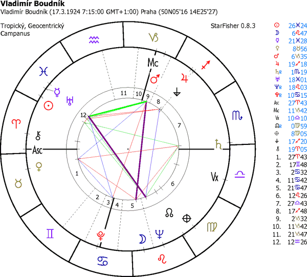 Vladimír Boudník narozen 17.3.1924 v 7:15 SEČ Praha Zemská porodnice