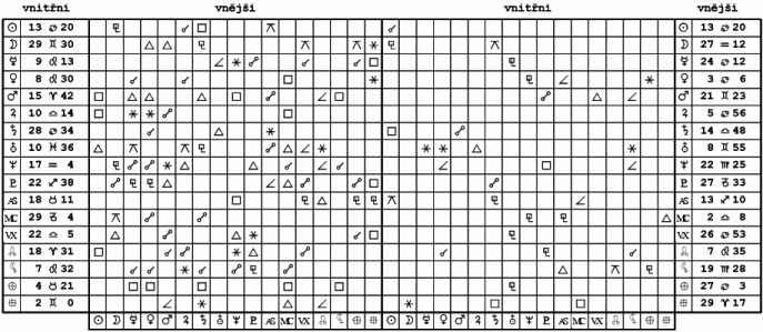 Saturn na IC, (otázku funkce Cheiróna /1 Vodnář 32/ na MC v opozici na něj nechávám záměrně otevřenou.