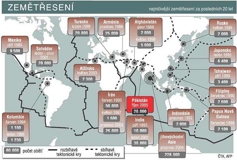 Velké množství mrtvých si vyžádalo sobotní zemětřesení o síle 7,6 stupně Richterovy škály, které postihlo Pákistán, sever Indie a Afghánistán. Obrovské škody jsou hlášeny z Pákistánu. Podle vládních úředníků tady bude počet obětí velmi vysoký, uvádí BBC.