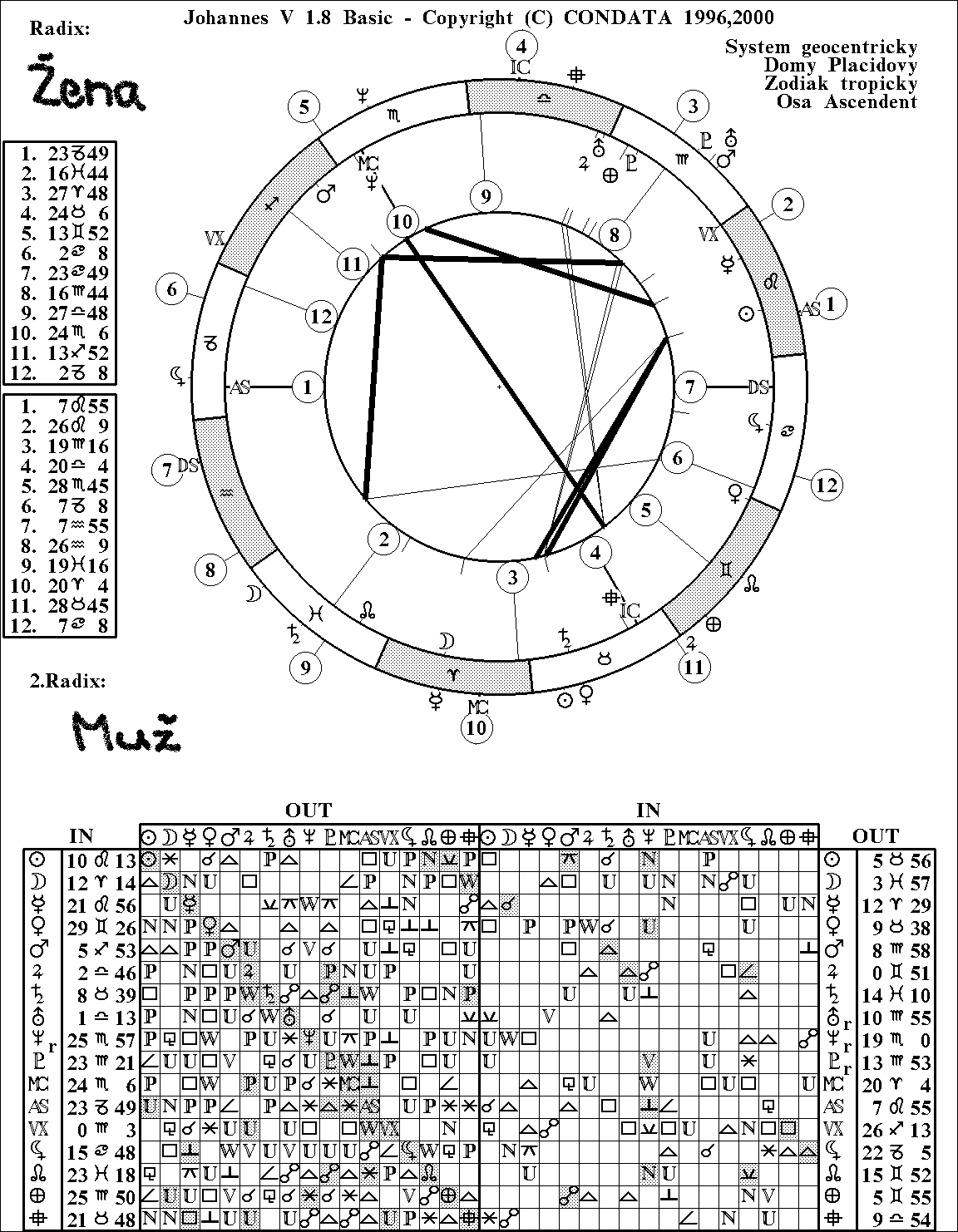 Dobrý večer. Som amatérka začiatočníka,a rada by som sa spýtala skúseného astrológa na nasledovný porovnávací horoskop. Zaujímalo by ma hlavne,či je možná dobrá spolupráca medzi touto ženou a mužom,alebo sa konfliktom nevyhnú. Ďakujem Helena