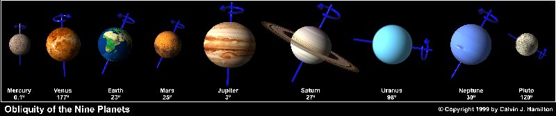 Zmínil jsem se o tom, že pro mne je velkým argumentem pro návštěvy "Nibiru" různé sklony rotačních os a různé směry rotace planet naší sluneční soustavy.
