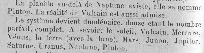 "Planeta za Neptunem existuje, jmenuje se Pluton. Objektivní/reálná existence Vulkánu je též přijata.