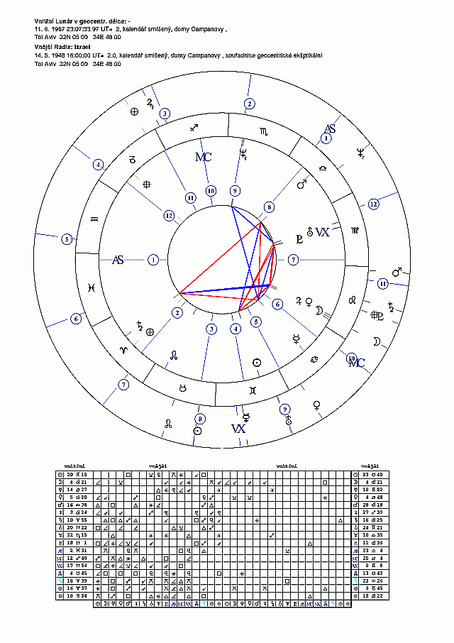 Existuje Magdaleno,ještě druhý radix státu Jisrael a k 16:37 EET, kdy četba prohlášení nezávislosti vyvrcholila. je zajímavé, že v době vítezství v šestidenní válce tranzitoval Jupiter přes MC tohoto radixu s diferencí půl stupně