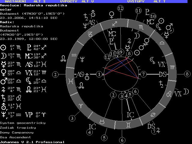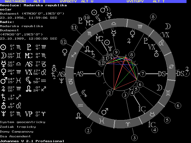 Teď udělám něco téměř neomluvitelného, retrosolár na výbuch povstání proti sovětské okuppaci 23.10.1956. Neptun v přesné konjunkci se Sluncem a Pluto pravě vstupující do Panny tam vrhá sextil, uran kvadratura MC atd atp