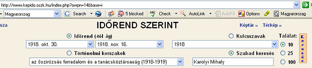 hledej taky "Frostflower revolution" v maďarštině. Já už vím, že (Lidová) republika Maďarská byla vyhlášena 16. listopadu 1918 venku před Parlamentem a že bylo mnoho řečnění a vzruchu kolem a u toho a presidentem se prohlásil hrabě Karolyi