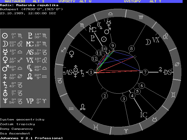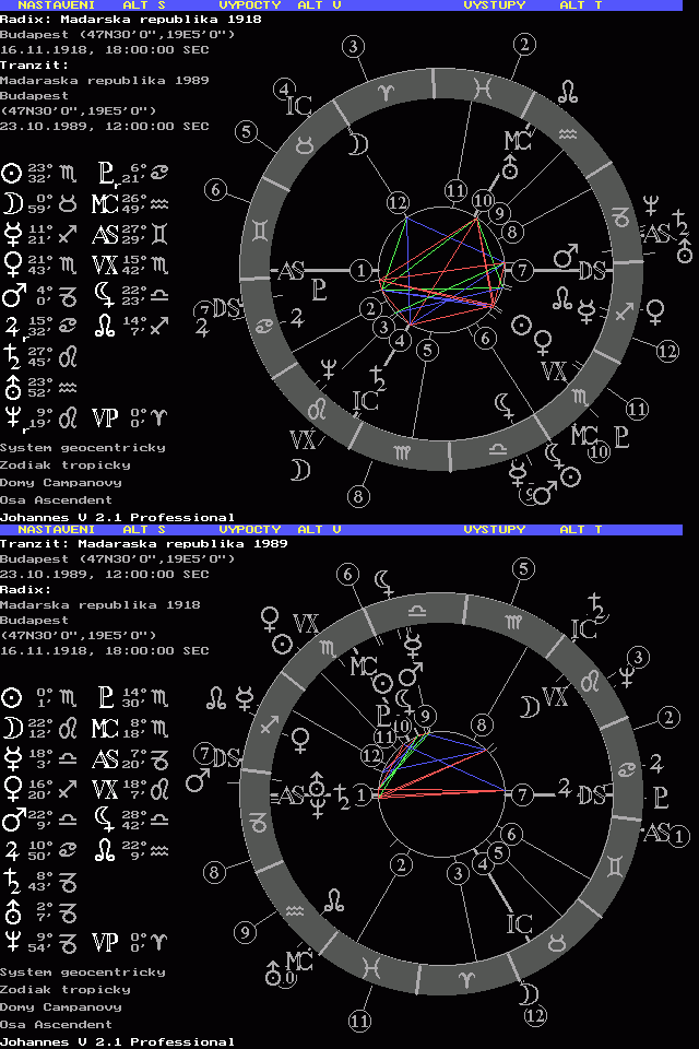 nedají mi ti Maďaři rozmilí spát, tady je rozkošný lunár na 19.9. uprostřed nejbouřlivějších dvou dnů od roku 1989 jak je nazval maďarský premiér. Počítáno k radixu Maďarské republiky 23.10.1989 poledne. Tím je řečeno vše, na listopad 1918 můžeme zapomenout. Turnovský