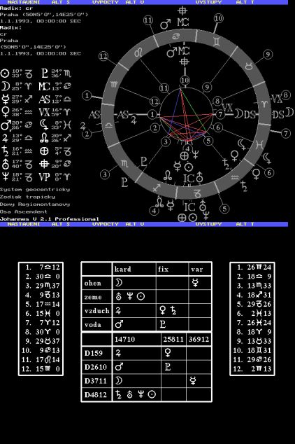 Zkusím ještě pohledat onen program a nějak někde zprovoznit a porovnat výsledky. Systém výpočtu (pokud by někoho zajímal) je uveden zde: http://www.astrolexikon.ic.cz/TEMATA/domy/systemy/km.htm