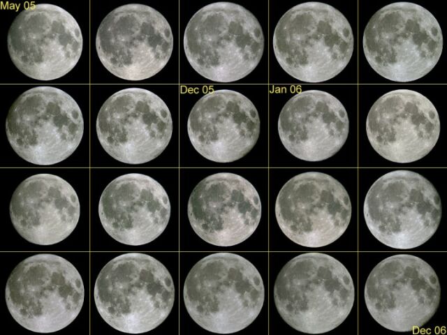 Na obrázku, který Vás, Marcelko, zmátl, je dvacet úplňků za sebou a je z jejich měnící se velikosti vidno, že byly pořízeny, když byla Luna na své oběžné dráze různě daleko od Země.