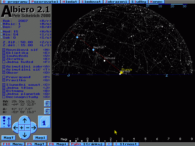 Za patrně bezkonkurenční považuju free prográmek Winstar - nejen dokonalá observatoř, ale taky cestování sluneční soustavou, nastavení podmínek etc. Nejen srdce znalce zaplesá. Mrkněte na screeny...