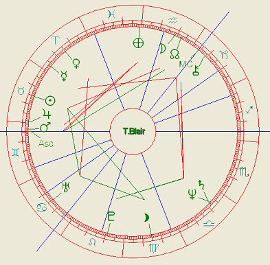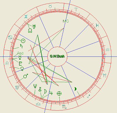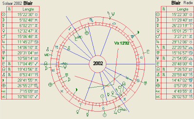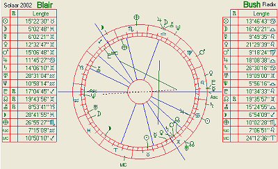 Bushovo osa ASC/DES pada na Blairovo DES/ASC 2002, a na IC tohoto solaru je VE,MA, SAT a DH v konjukci.