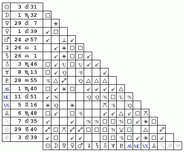 při konjunkcích Uran-Saturn a Uran-Neptun v letech 1988/9 se aspekt Saturn pohyboval cca. od kvinkunxu přes trinus až po kvadraturu.