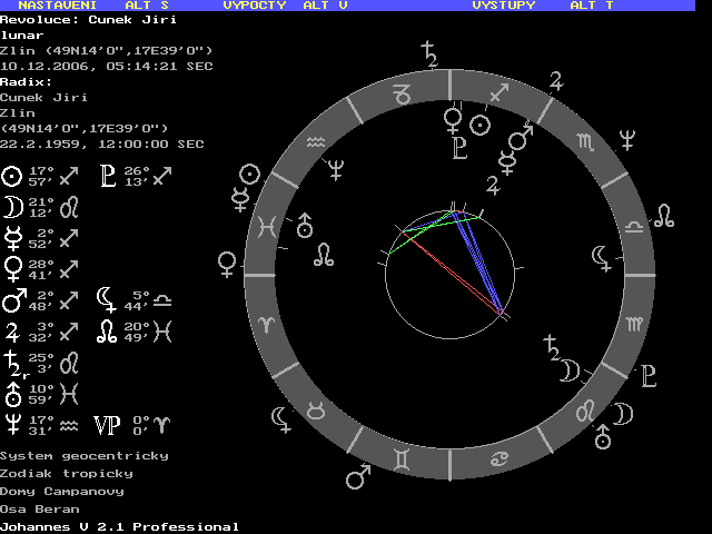 Jenže když se podíváte na ten lunár, nedá se přehlédnout, jaké očekávání voličů ho vyneslo do čela lidovců: trojkonjunkce Mars-Merkur-Jupiter na Jupiter radix, Uran na Merkuru radix, lunární revoluce v den zvolení, trigony ze Lva do Střelce.