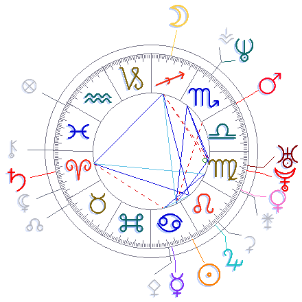 To je Juno. Kromě spousty dalšího bezvýznamného smetí. Celkově klasická (a odstrašující) ukázka toho, jak horoskop vypadat nemá.