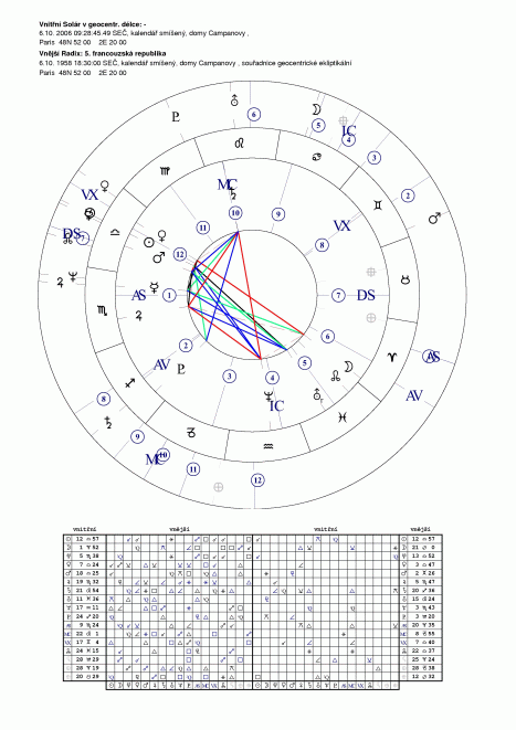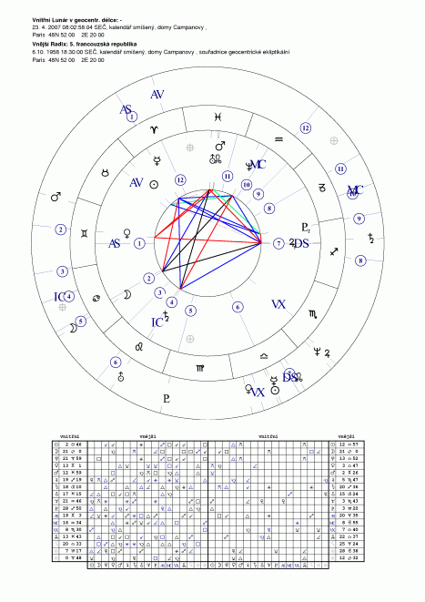 Pokud by s eněkdo chtěl zabývat francouzskými prezidetskými volbami z hledista tranzitů vůči radixu republiky, bude na tom podobně jako v případě republiky naší. K dispozici jsou dva radixy I. repbliky ze září 1792 a aktuální V. republik aoplývá přinejmenším třemi verzemi z počátku října 1958