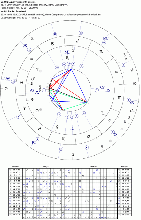 Royal-ová má taky pěkný Lunár, ale vidíte tu rozdíl mezi dlouhodobým tranzitem Uranovým konkunkcí k Luně (změny vnitřní - u ní) a kvadraturou Urana na Lunu v Sarkozy-ho soláru (tlak na akční změny zvnějšku, ale jen pro příslušný rok)