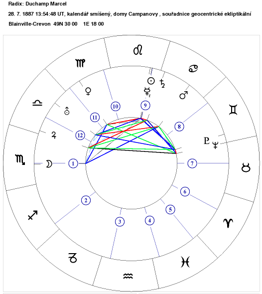 Marcel Duchamp narozen 28.VII.1887 14hod LT Blainville-Crevon 49n30, 1E18