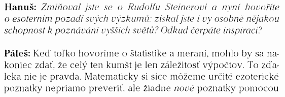 Nic proti tomu nemám. Abych pravdu řekl, je mi esoterní přístup dr. Páleše milejší než snahy některých astrologů podpořit hodnověrnost astrologie hledáním kauzálních vztahů fyzikálních. Podobně jako je mi milejší tvrzení, že vzdušné bouře vyvolávají sylfové, než hledat krkolomné způsoby jak spojit poetiku magického myšlení s mechanistickým přístupem striktního racionalismu.