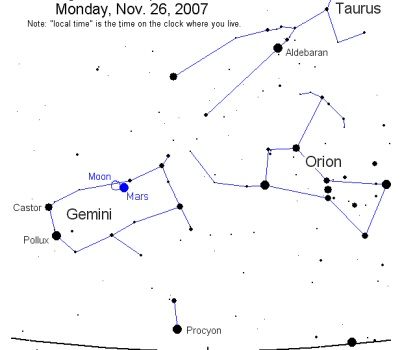 Jinak včera večer bylo i pouhým okem možno sledovat, že Luna to míří mimo Mars a že ho nezakryje. Ovšem Stellarium nemám a v horoskopu se to jeví jako konjunkce. V jiném vlákně jsem dnes psala, že už ten Yod Mars-Pollux-Castor není tak přesný pouhým pohledem vzhůru, ale že je Luna mezi hvězdami a stačilo pár hodin a Luna je pod Castorem a Polluxem, takže tou branou neprojde- a to se mi jevilo před pár hodinami jako velmi pravděpodobné.