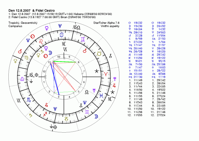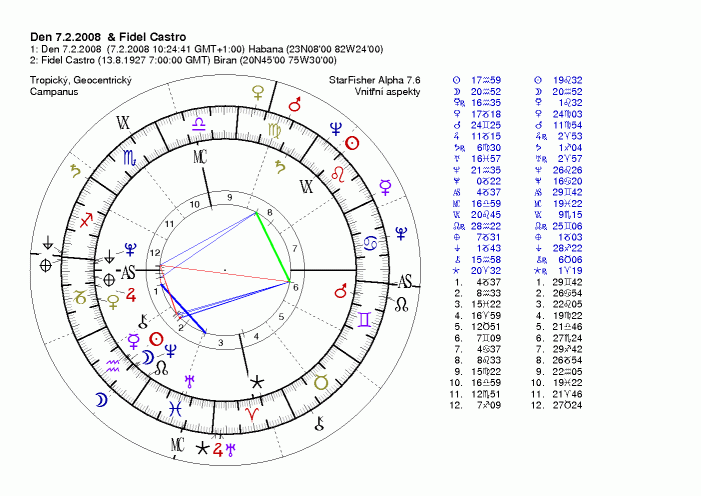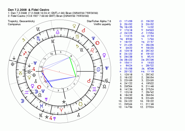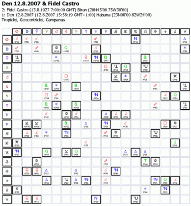 Jeho solární a demisolární revoluce, podobně i transolární a transdemisolární revoluce podobně jako lunáry a translunáry jsou eňoňuňo pro rezignaci, abdikaci, a pod. manévry, Sledujte Neptuna, je tam jak vyšitý, nedivím se, že je řadou lidí "oplakáván" jeho brat Raul je totiž ještě horší a navíc nemá žádné charisma (podobně šedá myš jako Slobodan Miloševič), je to zkostnatělý byrokrat, ketrý se moci, jež mu padá do klína nepustí ani za cenu občanské války