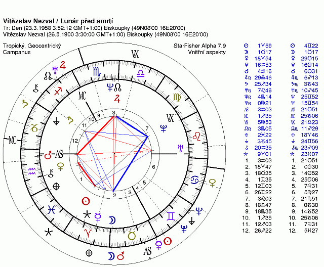 24. 3. 1958 DH Luna Štír 18 7. 22 +oktil Kozoroh 9 1. 0 8.dům Štír 24 8. 0