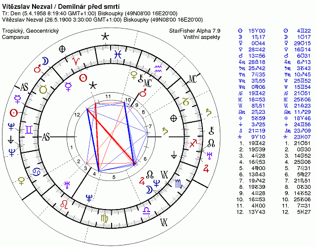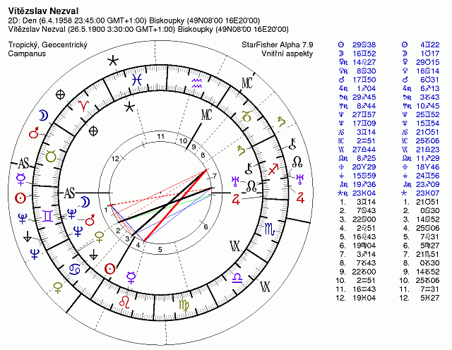 29. 4. 1958c Pluto Býk 23 1. 28 -kvadratura Ryby 3 12. 0 Neptun Blíženci 3 2. 13