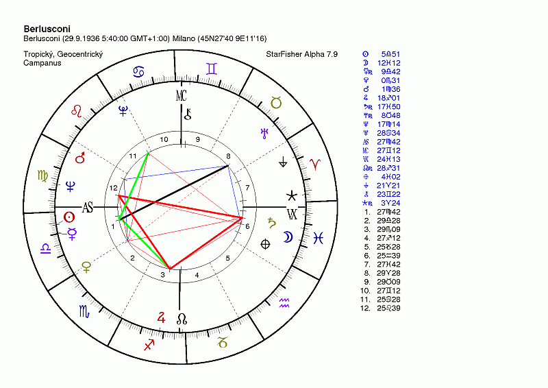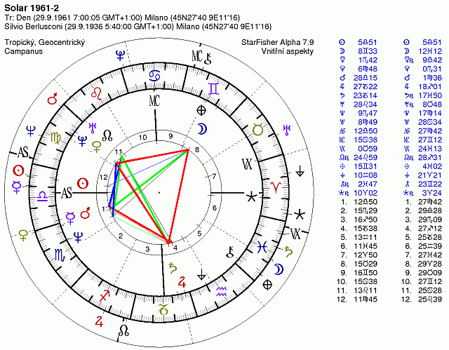 vyjděme z obecné charakteristiky Slunce-individualismus a Saturna-ego a novilu jako postupného dosahování vyšší úrovně vědomí, analogie střídání aktivních a asimilačních period. U Berlusconiho vidíme jak s jídlem roste chuť. V současnosti už se ani netají tím, že mu chybí do sbírky úspěchů ještě funkce presidenta. i na to jistě dojde