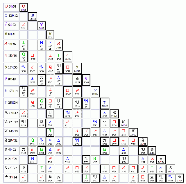 V jeho nativitě je řada explicitních znaků, ale jeden méně zřejmý je doběžný kvartinovil mezi "nestydatým" Sluncem a "chronickým" Saturnem podél Luny
