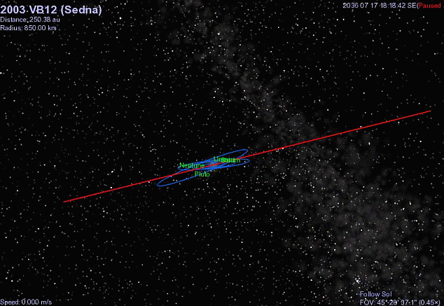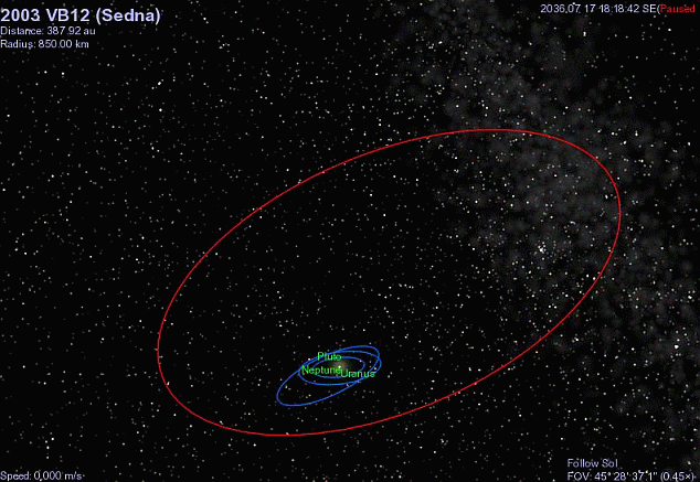 Pro zajímavost jsem ještě přidal pohled na sluneční soustavu v rovině dráhy Sedny.