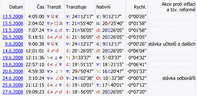 "Tak mám takové svrbění, že se blíží nějaký další skandál (v justici, ve vládě). Tenhle podařený úplněk znovuoživuje loňskou a předloňskou opozici Saturn/Neptun..."