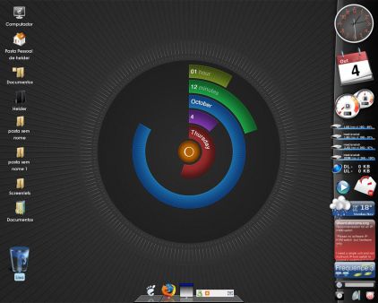 co je widget wím, mám nějaké pro Operu, ale to co se mi ukázalo na obrazovce se tváří jako Mac a je to Linux a je to velmi jednoduché, žádný astroláb to samozřejm není. Každý kruh je rozdělen na příslušný počet stejných výsečí: hodinový na 12, minutový na 60 apod z toho nic než datum a čas nepoznáte