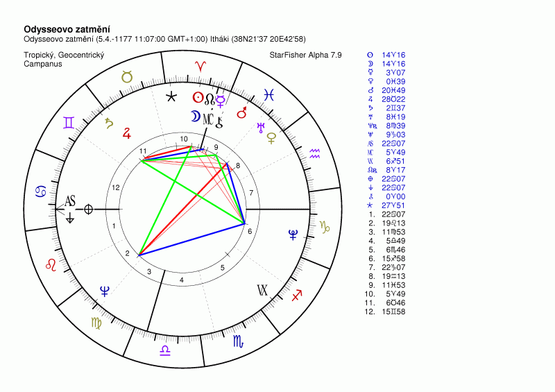 v dnešním Právu je zajímavý článek o tom, že argentinský astronom Constantino Baikouzis a americký fyzik Marcelo Magnasco dešifrovali údaje z Homérovy Odyssey. Opřeli se o věštbu věštce Theoklymenose, který v Odyssee věští brzkou smrt Penelopiných nápadníků a věštbu končí slovy: Slunce zmizelo z nebes a nešťastná temnota zaplavla svět. Ze sekvence několika astronomických pozorování zachcených v Odyssey odvodili, že se jedná o zatmění Slunce 16. dubna 1178 př.n.l., kdy Ithaka ležela v pásu totality zatmění (viz obr. NASA) Odysseus se vrátil na Ithaku 10. dubna. Podle chronologie založené údajích v Iliádě a Odyssey lze odvodit, že Trója padla v roce 1188 př.n.l. a přibližně do roku 1190 př.n.l. je archeologicky datováno zničení tzv. Tróje VIIb