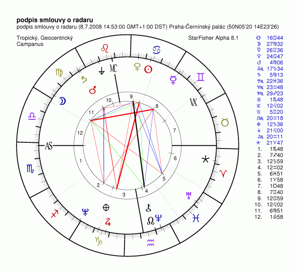 Chtěl jsem se zeptat, proč berete radix Česka z roku 93 a ne z roku 1918. Podle mého radix z roku 1918 stále perfektně platí a stejně tak platí i na situaci z 8.července 2008.