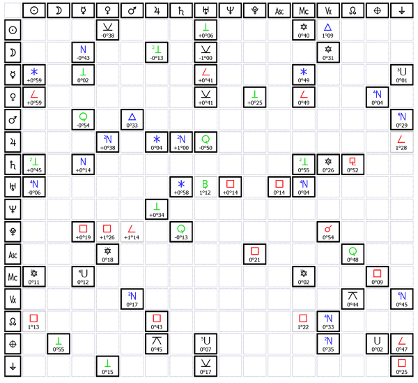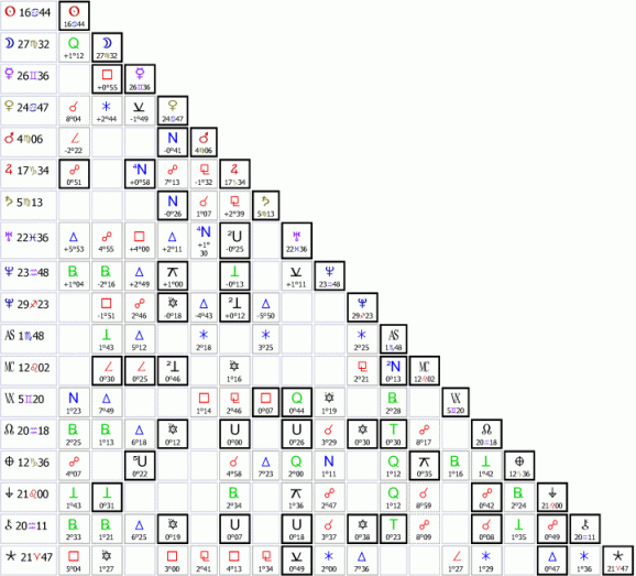 1) Aspekty planet sedí, protože jsou stejné jako ve skutečném horoskopu, to je jasné.