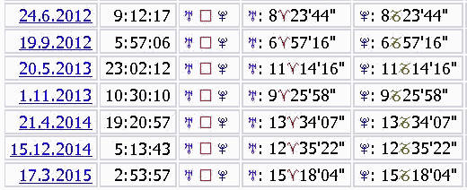 Nikolivěk, Arnošte, kvadrát mezi Uranem a Plutem bude až v letech 2012-15, celkem sedmkrát, a to z Berana do Kozoroha. Pan Jiří nebo pan Turnovský sem ostatně mohou zavěsit výstup z Johannese, kde to je černé na bílém. Můžeme se bavit o tom, že tato kvadratura má nějaký orbis, tudíž připočtěme několik let plus minus, nicméně ani do orbisu se zatím nevejdeme.
