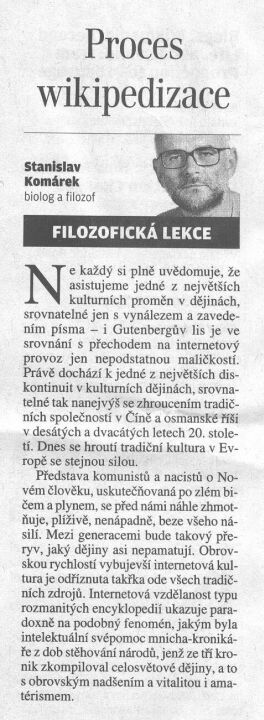 Že by už neměly university koho učit? Na rozdíl od pana Komárka si myslím, že poměr vzdělaných k nevzdělaným zůstává i přes fenomén wikipedizace celkem stejný. Možná díky onomu fenoménu budou někteří nevzdělaní aspoň polovzdělaní.
