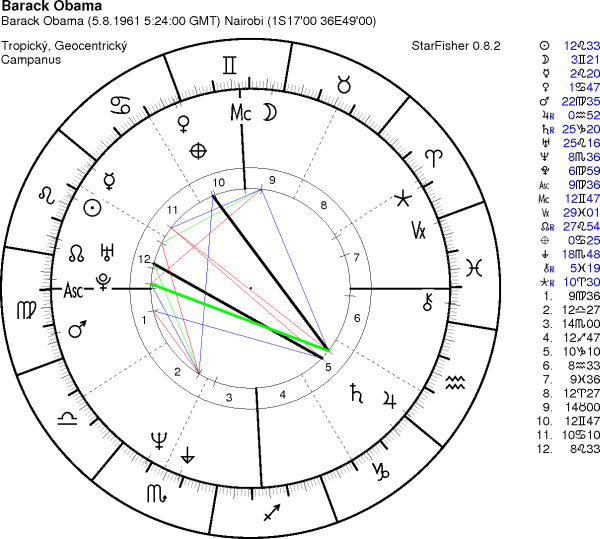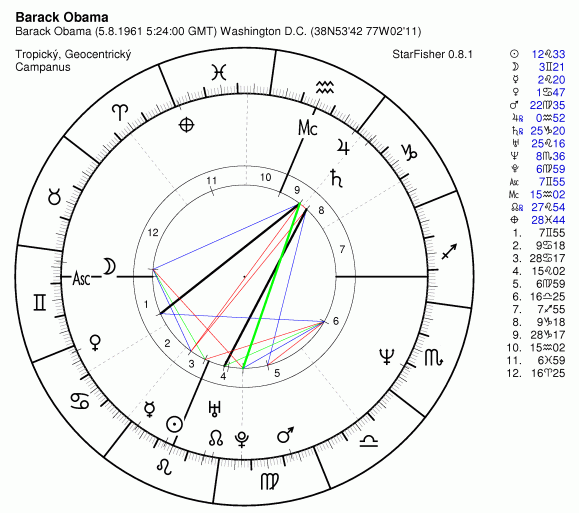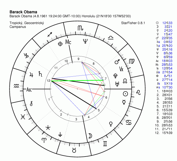 Obama ma naopak konjunkci Jupitera na Jupiter+Saturn ve 12. dome.