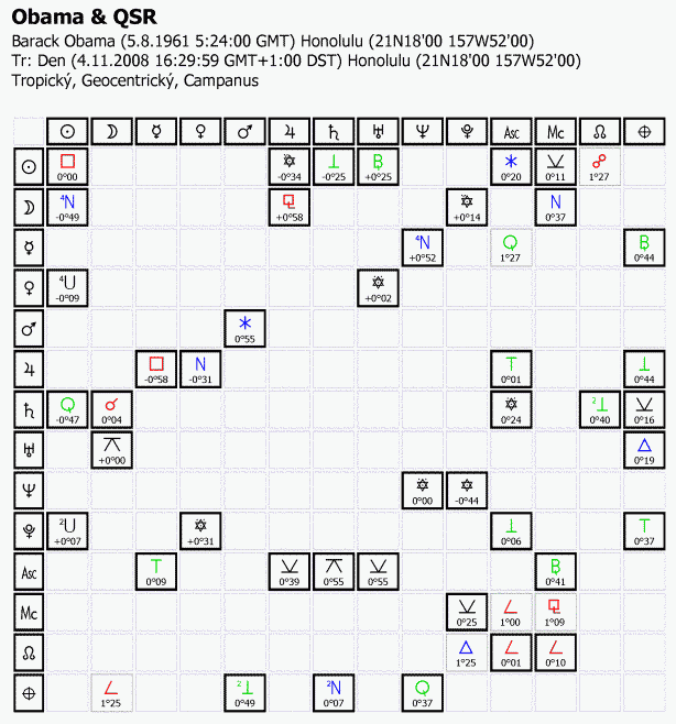Zajímavé je, že McCain má v den voleb Lunární revoluci a to velmi pěknou, stejně tak má pozoruhodné lunáry v okolí 20.ledna, kdy US president nastupije do úřadu. Tranzity mu jsou taky nakloněny. Takže, kdybych měl sázet na vítěze, byl by to McCain, i když se mi ani trochu nelíbí. Obama myslím dosáhl obrovského úspěchu už tím, že se jako Afroameričan probojoval až k nominaci a jeho skvělý nominační projev (na 45. výročí po projevu M.L.Kinga I had a Dream) sledovalo v TV 38 milionů lidí, tedy rekordní množství. Tím to myslím prozatím končí, i když nejspíš prohraje těsně.