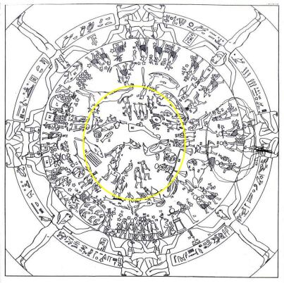 Ještě dodávám, že známý zodiak z Dendery zobrazuje po svém obvodu 36 postaviček a symbolů, které by mohly mít souvislost s dekany.