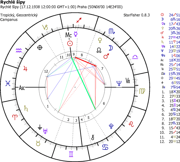 Vypovídající je tam kvadratura mezi Sluncem ve Střelci a Neptunem v Panně - útěk do světa neraálných snů a iluzí, tady o dokonalé ideové a mravní čistotě, čili témata Střelce a Panny.