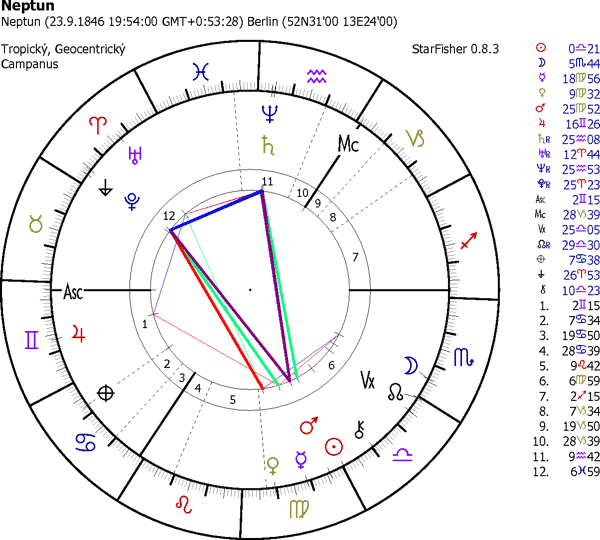 pro začátek horoskop objevu Neptuna Gallem a d´Aressem (na zákaldě spolupráce s Le Verrierem) na Berlínské observatoři. Čas je neznáme, použil jsem astronomický soumrak (Slune 18°pod obzorem)