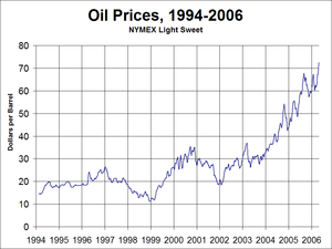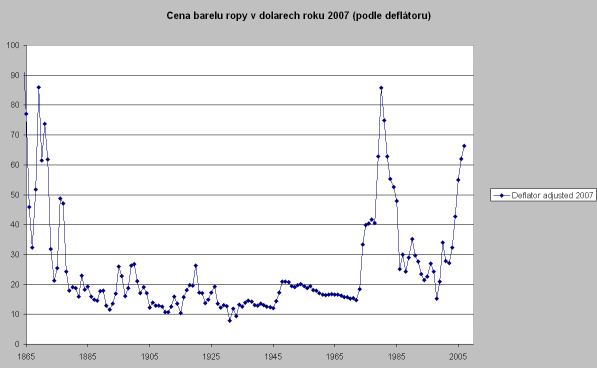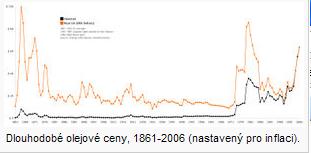 Pokusím se vložit první graf - vývoj cen ropy v US dolarech za barel za období cca druhé ploviny minulého století.