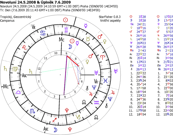 - setkání nad horoskopem novu, jeho rozvržením v horoskopu, s jeho návaznostmi na nativní horoskop, setkání nad sabiánským symbolem novu.