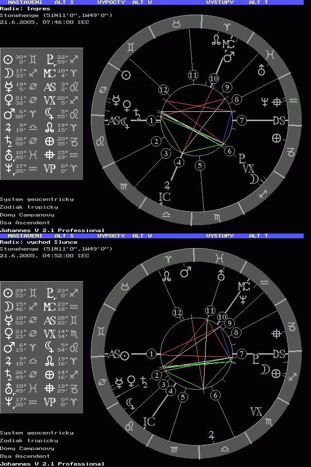 12 odpověď odeslal(a) srovnání ingresu a východu Slunce v Stonehenge v Úterý 21.Června 2005 11:09:52